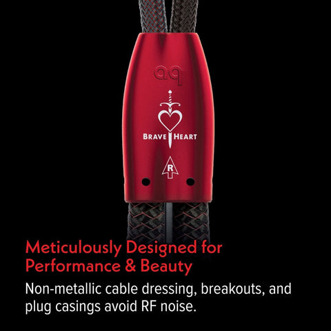 Brave Heart is bigger, badder, better than AudioQuest has ever offered at this price.- ZERO-Tech (No Characteristic Impedance): The only way to prevent characteristic-impedance mismatch-effects between a cable and its attached source and load circuits is for the cable not to have a characteristic-impedance. ZERO-Tech accomplishes this by eliminating any electrostatic field between the cable’s high and low signal conductors — enabling uncompressed current transfer. All-important transient current is unrestricted, and RF-Noise Dissipation is linearized (consistent octave to octave).