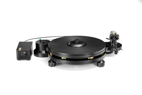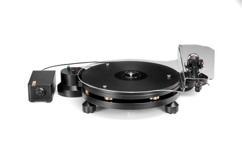 The outboard motor pod and PSU are grounded and electromagnetically shielded to prevent interference. Integrated electronic switching allows seamless transitions between 33.3 and 45 RPM, delivering smooth, accurate playback.